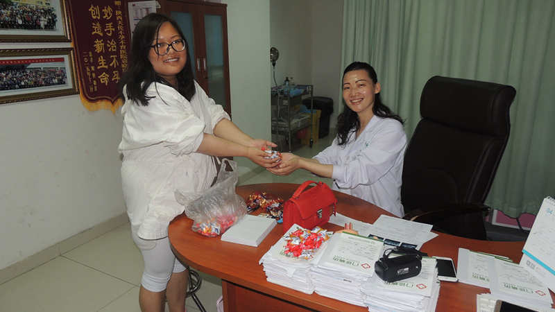 袁主任介绍治疗过程:王坤是去年5月份经过朋友介绍来到医院找到我的,当时她非常紧张,一检查完就问我,她到底能不能怀孕,直到我肯定地告诉她能怀孕她才放下心来,她也是去过很多医院看过,一直没看好。她是典型的多囊卵巢综合加上肥胖引起的不孕,我通过指导她饮食减肥,对她的内分泌进行调节,身体状况恢复正常状况后又指导他们同房,前前后后她体重减了20多斤。2016年1月她高兴地打电话告诉我她怀孕了。现在胎儿已经五个月大了,刚刚检查一切正常,真心地替她感到高兴。