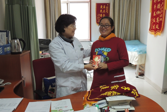2016年11月4杨小华来院报喜,与大家一起分享喜悦,并且我院为准妈妈送去三次免费四维彩超优惠券作为礼物。