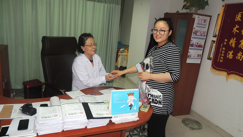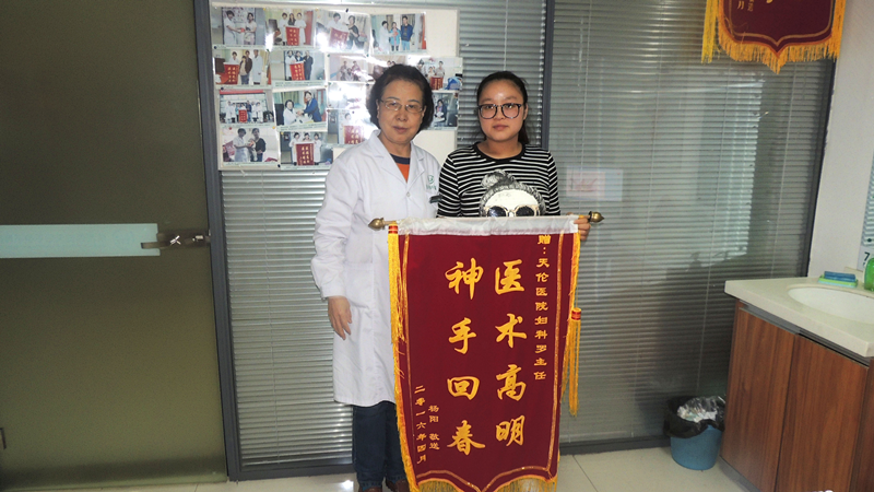 2016年4月12日杨阳在婆婆的陪同下来我院报喜,送锦旗感谢罗主任精湛的医术,并给大家发喜糖,分享他们家的幸福。