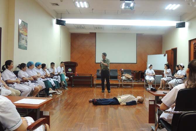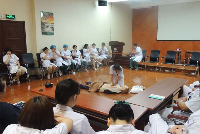 7月18日下午4点,我院医务科、护理部组织医院住院部、输液室、门诊等科室对全体医护人员进行徒手心肺复苏操作专题培训,全院共计50余人参加。