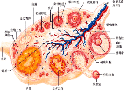 4. 生殖转换生长因子与子宫内膜异位症:当异位的子宫内膜引起卵巢病变,卵巢颗粒细胞功能受损,致使由颗粒细胞分泌的生殖转换生长因子水平降低。