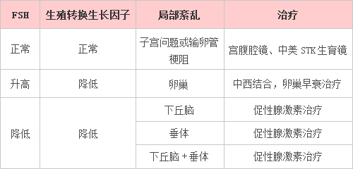 2. 生殖转换生长因子与卵巢早衰:当生殖转换生长因子水平不足以维持bFSH在正常范围时,在表现为血液bFSH的升高。因此测定血清生殖转换生长因子水平可作为早期诊断卵巢早衰的一项重要指标。